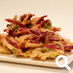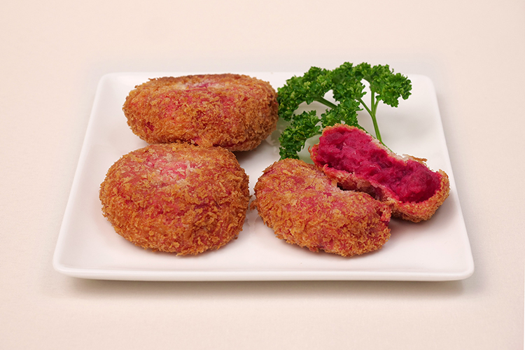 ④8〜14個くらいに分けて形を作り、衣をつけて中温(約170℃)で色よく揚げる。